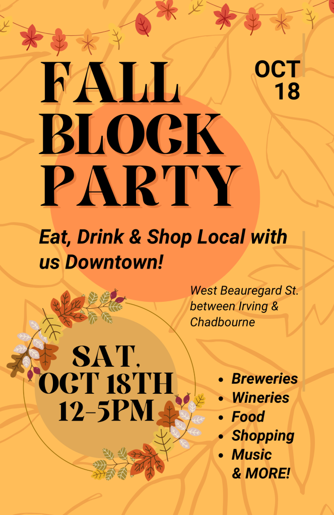Mark those calendars for the Downtown Fall Block Party, Saturday, October 18th from 12–5 PM!!